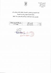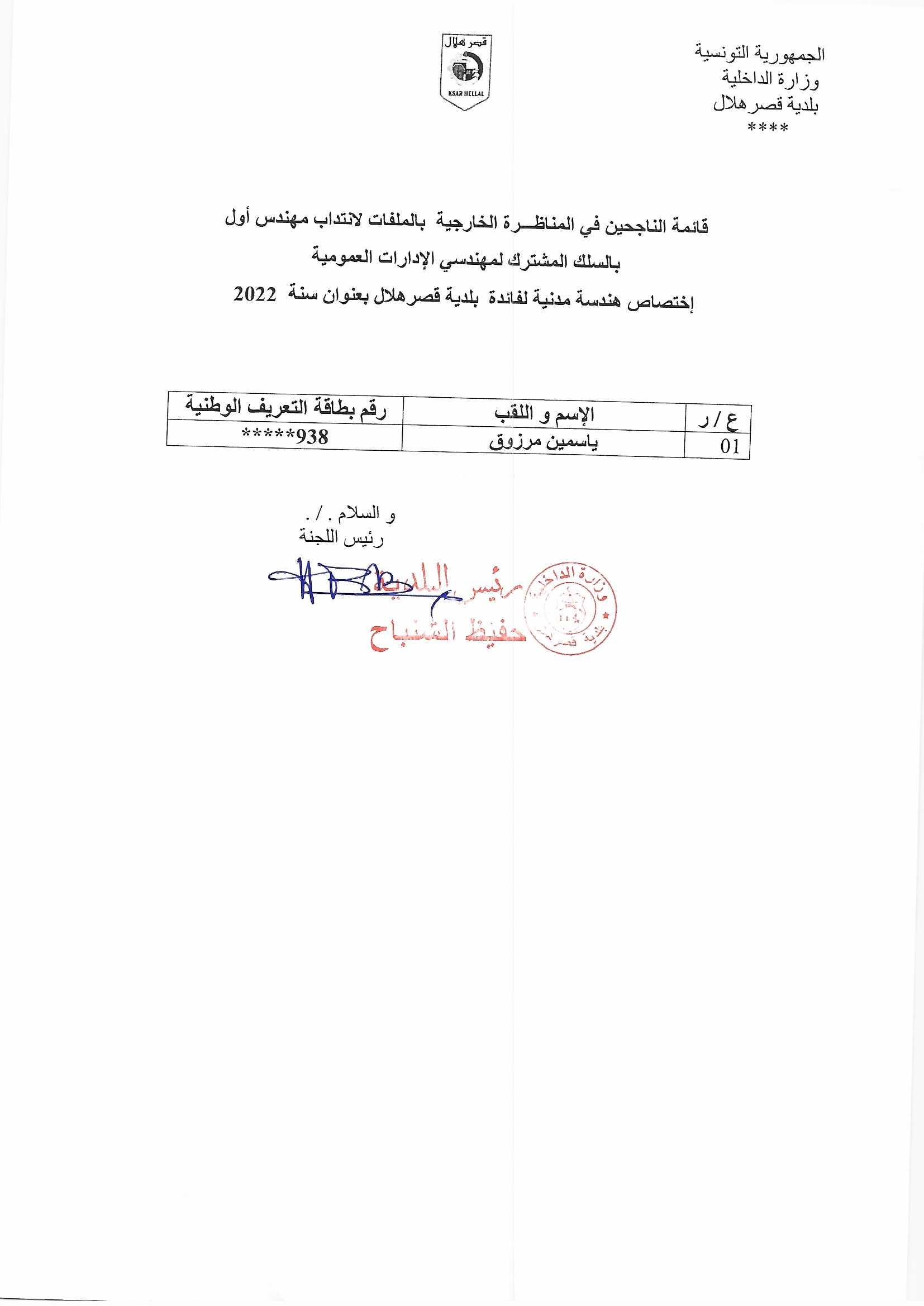 قائمة الناجحين في المناظرة الخارجية بالملفات لانتداب مهندس أول admin 24 يناير 2023 آخر المستجدات اضف تعليق 23 زيارة شاركها Facebook Twitter Google + Stumbleupon LinkedIn Pinterest مقالات مشابهة الاعلان عن صفقة بالاجراءات المبسطة عدد 2026/02 أشغال صيانة الطرقات برنامج سنة 2026 8 أبريل 2026 محضر جلسة ادارية بتاريخ 03 مارس 2026 18 مارس 2026 محضر جلسة عمل ادارية بتاريخ 16 فيفري 2026 24 فبراير 2026 شاركها Facebook Twitter Google + Stumbleupon LinkedIn Pinterest